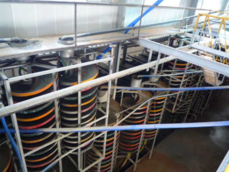 公司有玻璃鋼化工技術(shù)及制造工藝的優(yōu)勢(shì),早在1988年就研制開發(fā)了國內(nèi)大直徑及新斷面特性的DL—2000型兩米直徑玻璃鋼螺旋溜槽。該設(shè)備一臺(tái)處理能力相當(dāng)于40臺(tái)搖床,選別指標(biāo)優(yōu)良。1989年通過部級(jí)技術(shù)鑒定并獲獎(jiǎng),填補(bǔ)國內(nèi)選礦設(shè)備一項(xiàng)空白。20多年來,公司先后開發(fā)了一系列玻璃鋼選礦新設(shè)備,使設(shè)備性能、結(jié)構(gòu)參數(shù)更臻完善。就玻璃鋼螺旋溜槽φ400—φ2000各類系列產(chǎn)品和各種床條結(jié)構(gòu)的玻璃鋼搖床而言,公司擁有國內(nèi)完備的直徑與型號(hào)系列;完善的結(jié)構(gòu)參數(shù);過硬的制作質(zhì)量;新穎的改進(jìn)型式;可靠的設(shè)備選型方法。